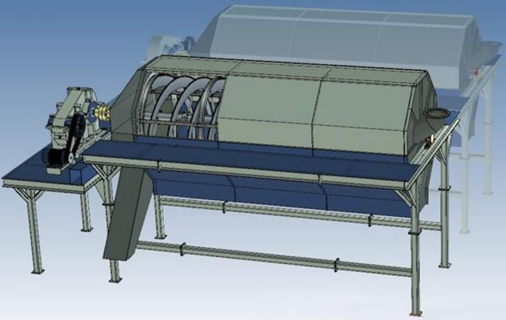 電動機經(jīng)減速機與滾筒裝置通過聯(lián)軸器連接在一起,驅(qū)動滾筒裝置繞其軸線轉(zhuǎn)動。當(dāng)物料進(jìn)入滾筒裝置后,由于 滾筒裝置的傾斜與轉(zhuǎn)動,使篩面上的物料翻轉(zhuǎn)與滾動,使合格物料(篩下產(chǎn)品)經(jīng)滾筒外圓的篩網(wǎng)排出,不合格的物料(篩上產(chǎn)品)經(jīng)滾筒末端排出。由于物料在滾 筒內(nèi)的翻轉(zhuǎn)、滾動,使卡在篩孔中的物料可被彈出,防止篩孔堵塞。滾筒篩' target='_blank'>滾筒篩砂機、滾筒篩分機與滾筒篩的原理構(gòu)造幾乎相同,是人們對它的認(rèn)識和叫法上存在差異。